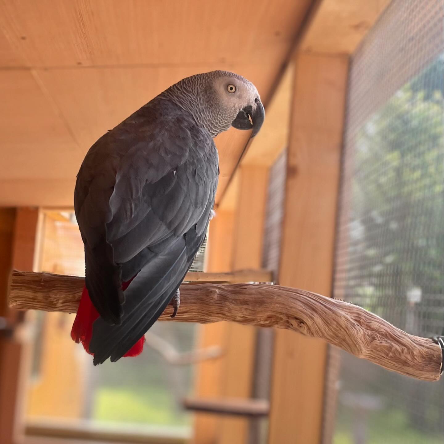 Maxi is a friendly African Grey Parrot known for intelligence, calm nature, and an impressive ability to mimic sounds. Maxi enjoys human interaction and loves being part of daily routines.