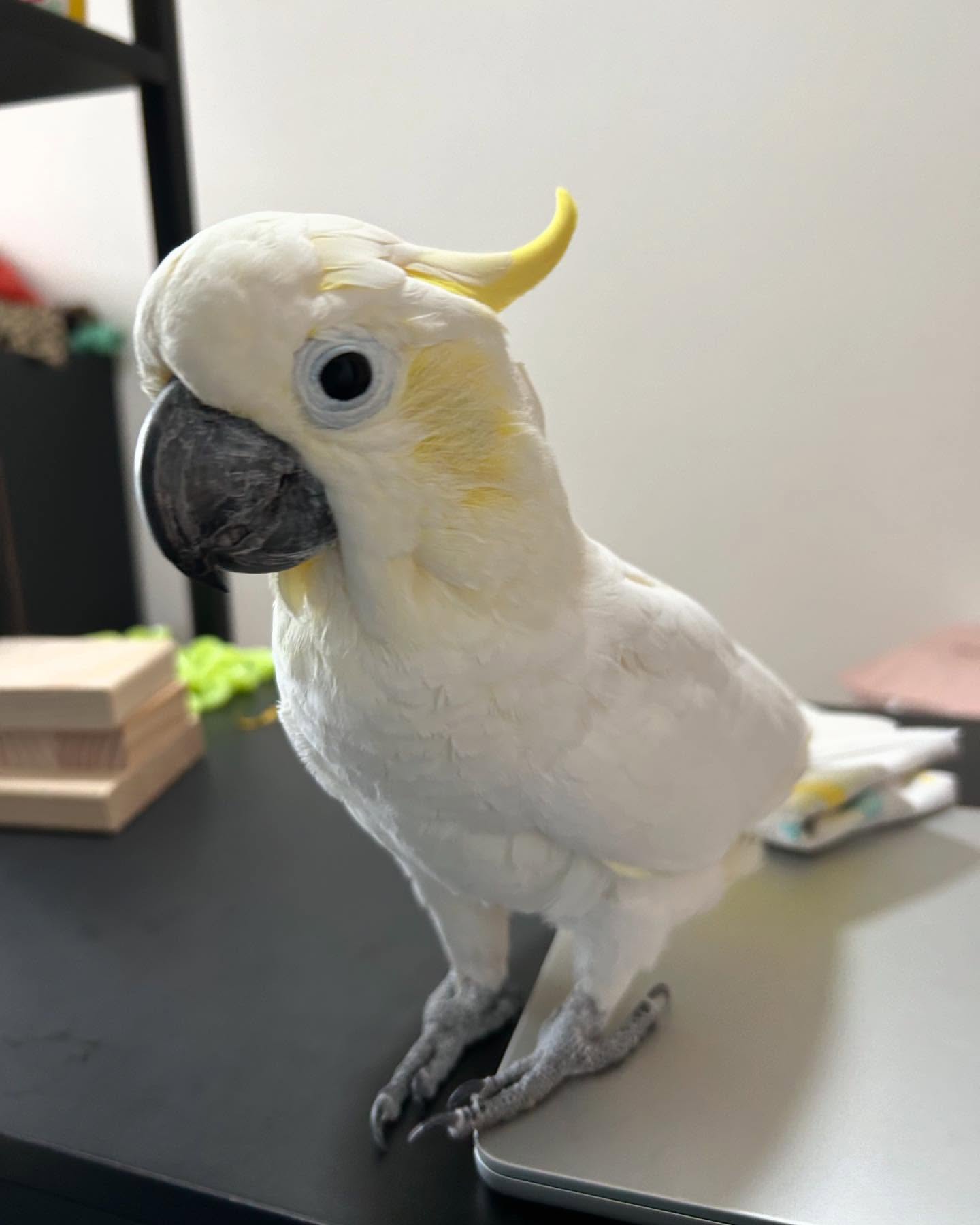 Adams is a sweet and affectionate Cockatoo Parrot with a playful spirit and a big heart. He loves attention, cuddles, and being the center of affection.