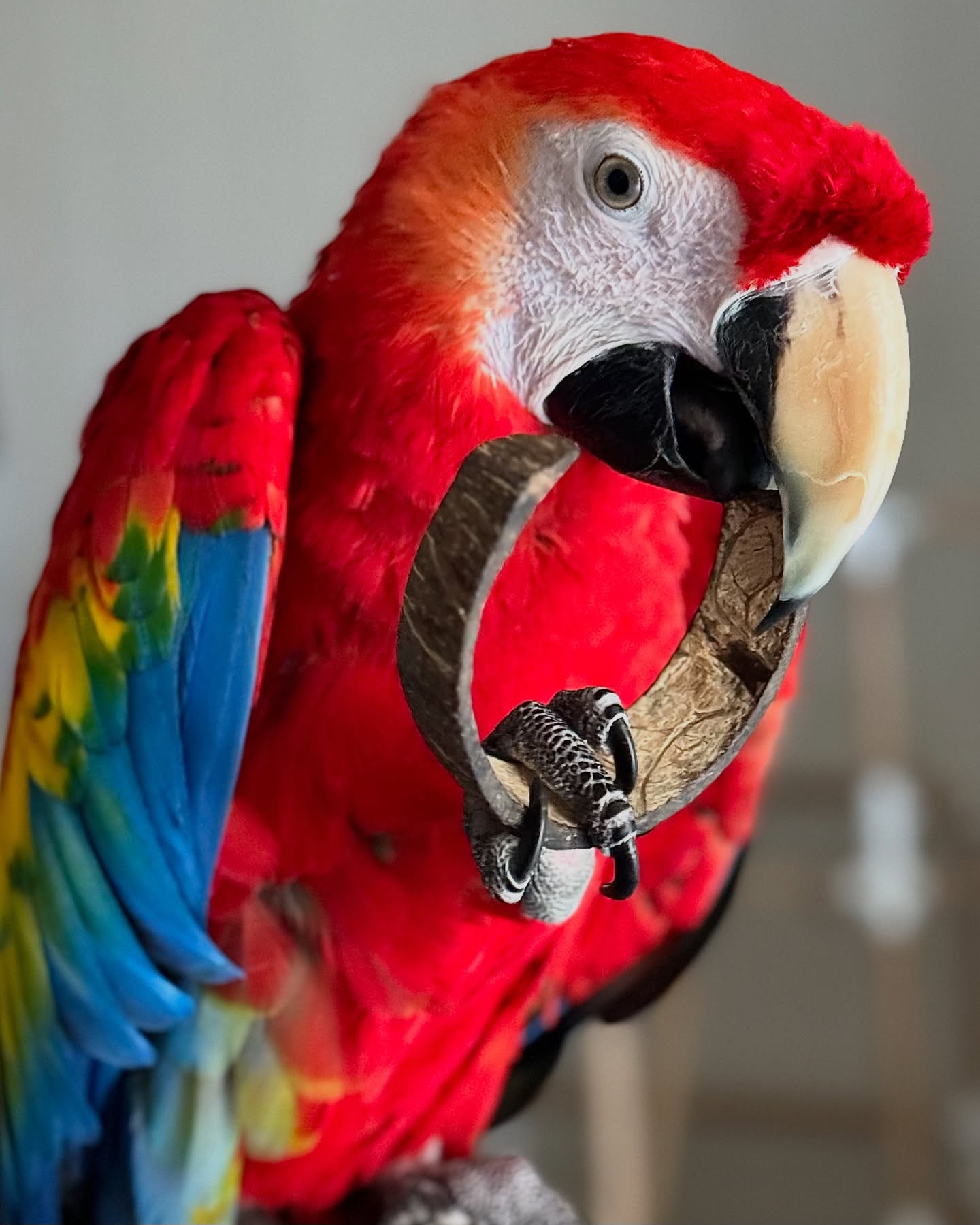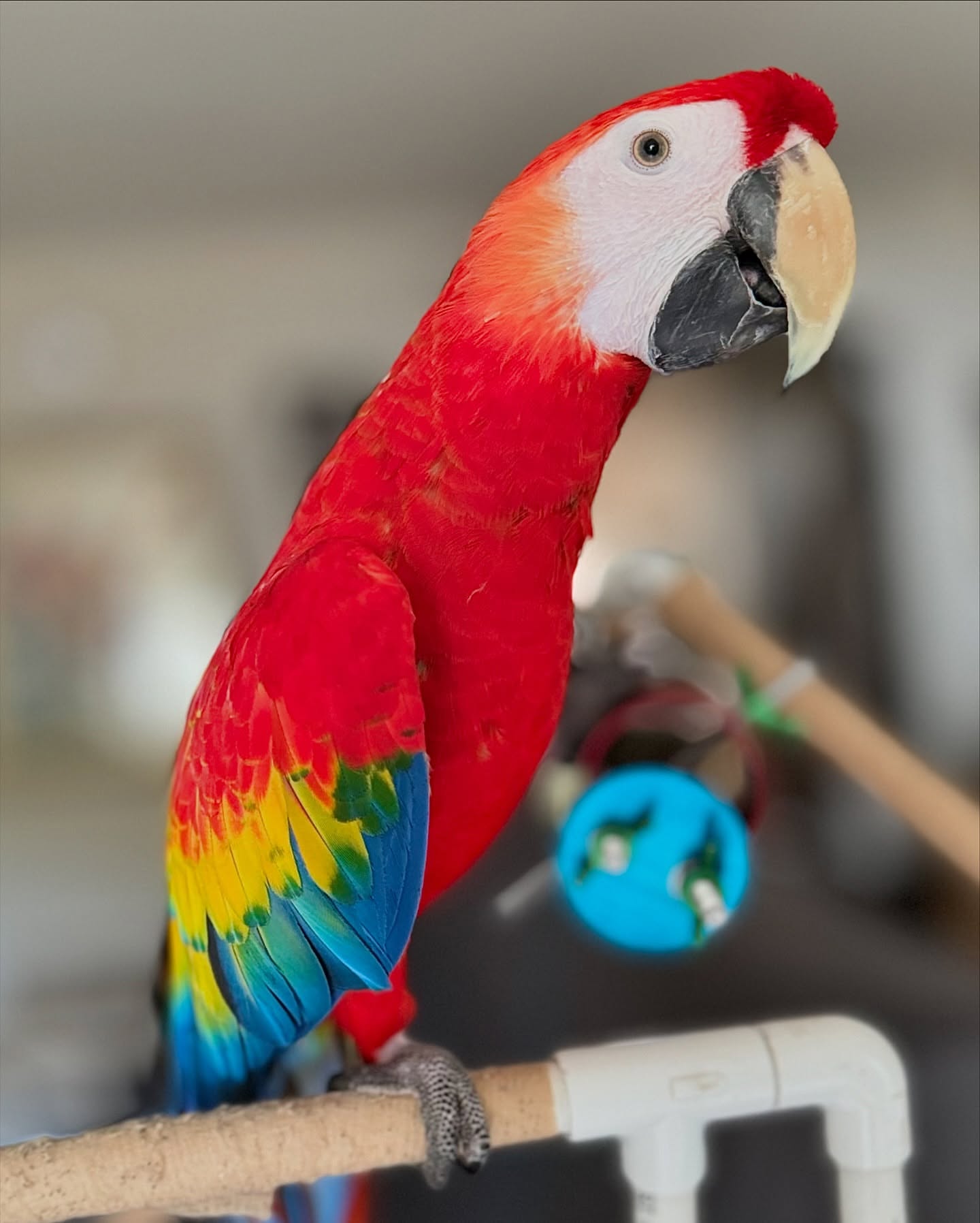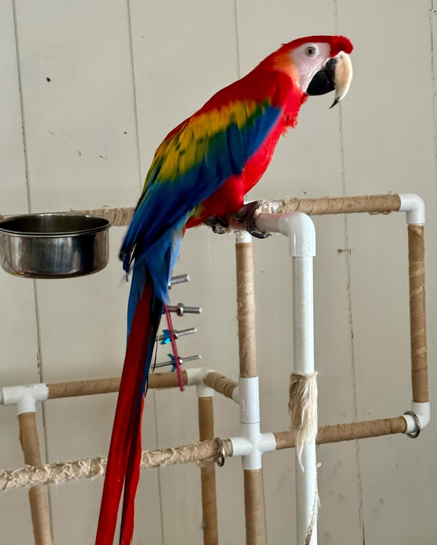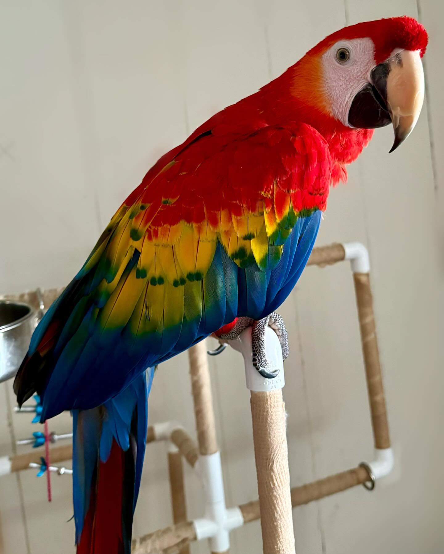 Nick is a stunning Red Macaw with bright scarlet feathers and a bold, friendly personality. He’s playful, intelligent, and loves being the center of attention.